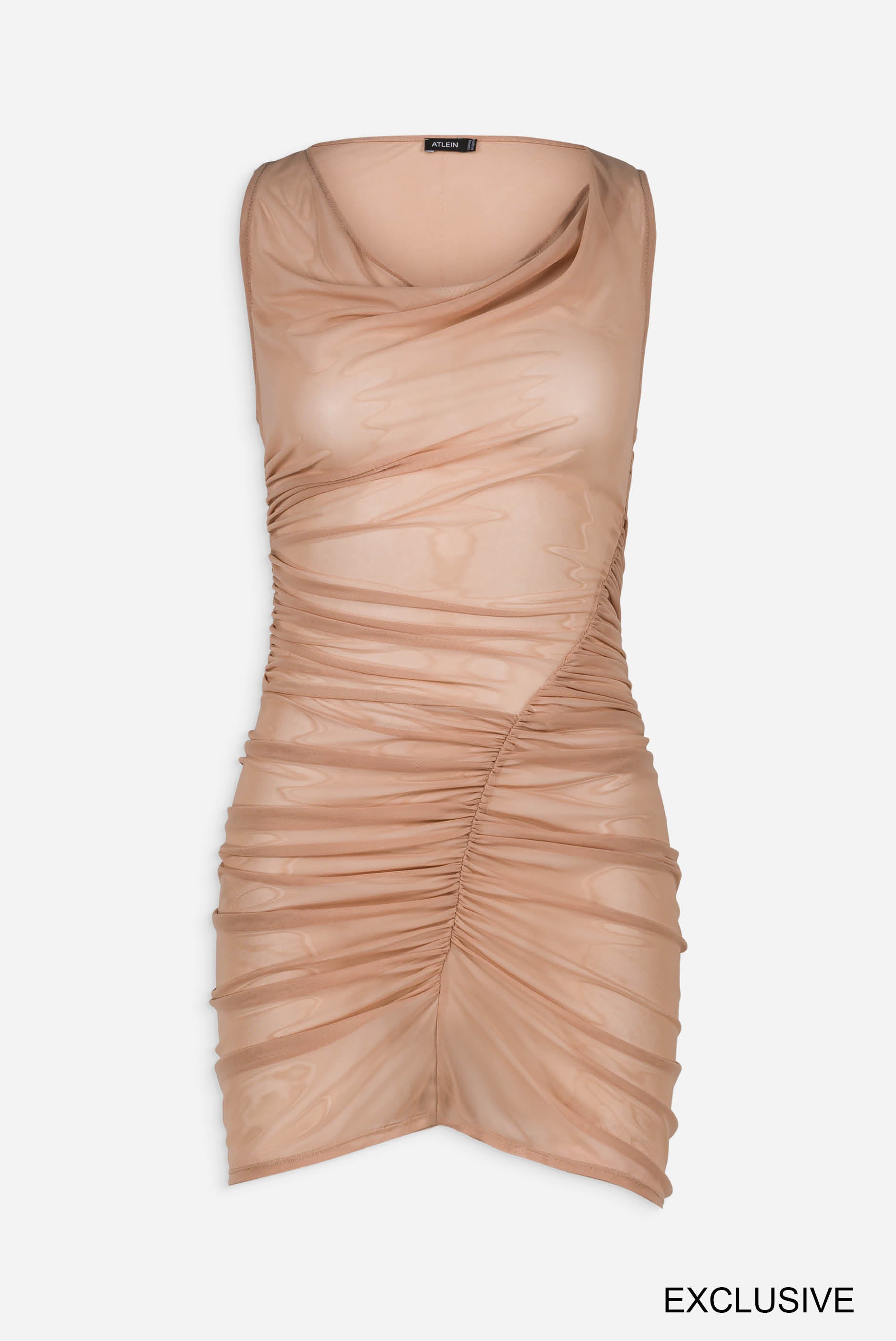 Ruched midi dress in tulle transparent
